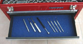 | That about does it- again, this is only a partial list and I can't possibly list all the cool tools I've used- these are just the basics. The best advice I can give is to watch the sale ads (Sears of course, nobody else sells as many tools and can't give the big price breaks like Craftsman does), and find a good complete set as a starting point. For example, I recently saw a 250 piece mechanics set with a free 4-drawer box for around $200- it had most of the required items, and would only need a little bit more to make it complete. If you go that route or not, you should also look into storage, because these things take up sapce. I have the three chests shown above stored in my bedroom (don't want to take any chances in the neighboorhood I live in :), and also have some stuff stored in cabinets here and there. It all adds up, so go for the biggest chest you can afford and leave room for future growth. Good luck, and have fun! |