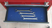 | A set of metric flare nut wrenches for the oil cooler lines and other tubing nuts. These ensure that you don't round the edges off of soft nuts on cooling lines and the like. Not absolutely necessary (I've never needed them yet) but should come in handy. You're looking at about $36 for a set (it includes standard too, but they don't sell a set of just metric and it is cheaper to get the whole set than these four metric wrenches). |