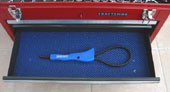 | A good old Craftsman strap wrench. Extremely handy, and worked very well removing my oil filter. A mere $10 means you should definitely have one in your toolbox. |